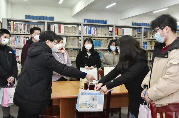“这次为考研学生准备的大礼包我们取名叫‘前程似锦’,里面有薯片、柿饼、糖果、手写祝福卡和印有‘金榜题名’防疫口罩,寓意我们每一个学生都是最牛的,希望他们事事如意、金榜题名。”刘敏芝介绍,学院还邀请毕业年级辅导员、学生代表、陪伴同学们备考的图书馆工作人员为同学们录制了祝福视频,“让学生看到交工院有一群关心、关爱他们的人,见证着他们的努力,期待着他们的喜讯。”
