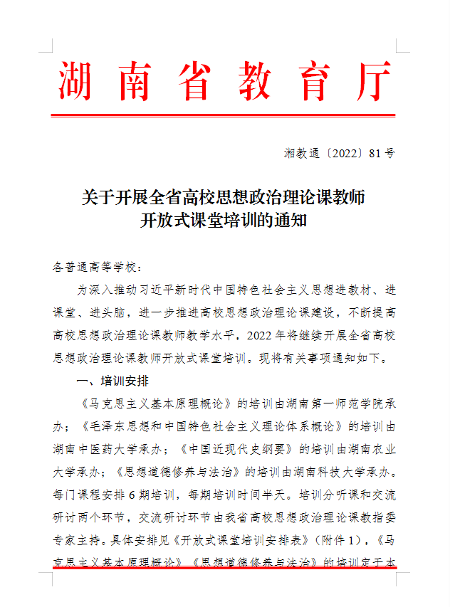 转发:关于开展全省高校思想政治理论课教师开放式课堂培训的通知