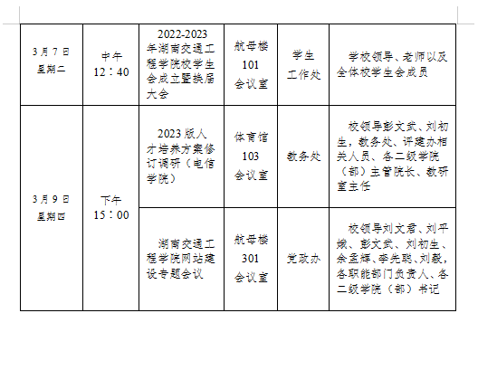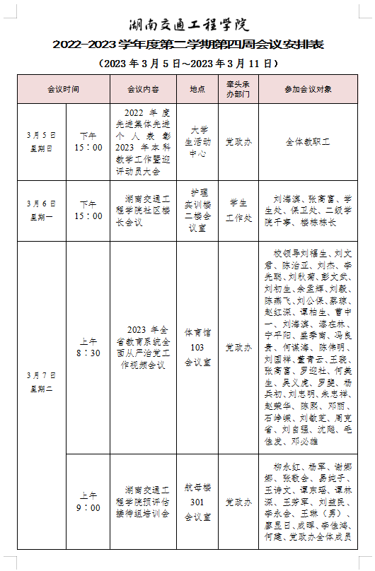 beat365唯一官方网站 2022-2023学年度第二学期第三周会议安排表