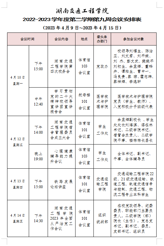 beat365唯一官方网站2022-2023学年度第二学期第九周会议安排表