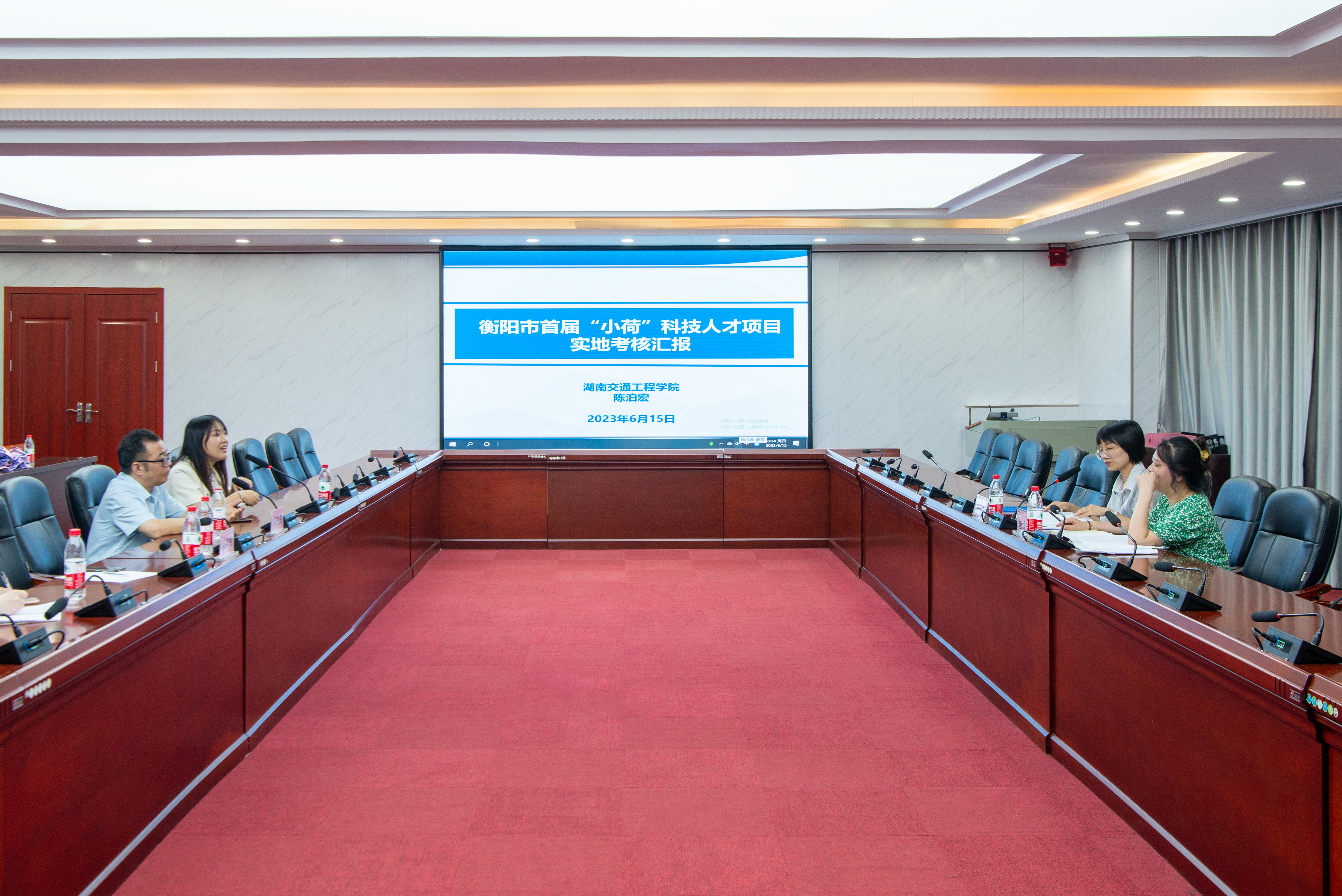 本网讯(通讯员 李水华 摄影 奉隆源)6月15日下午,衡阳市科学技术协会谭梅花、曾泷玉两位专家来beat365实地考核衡阳市首届“小荷”科技人才项目建设情况。考核分为汇报会、组织面谈交流、实地察看三个环节。beat365科技处处长冯良贵、副处长 ,机电工程学院教师陈泊宏及相关人员参加了汇报会。