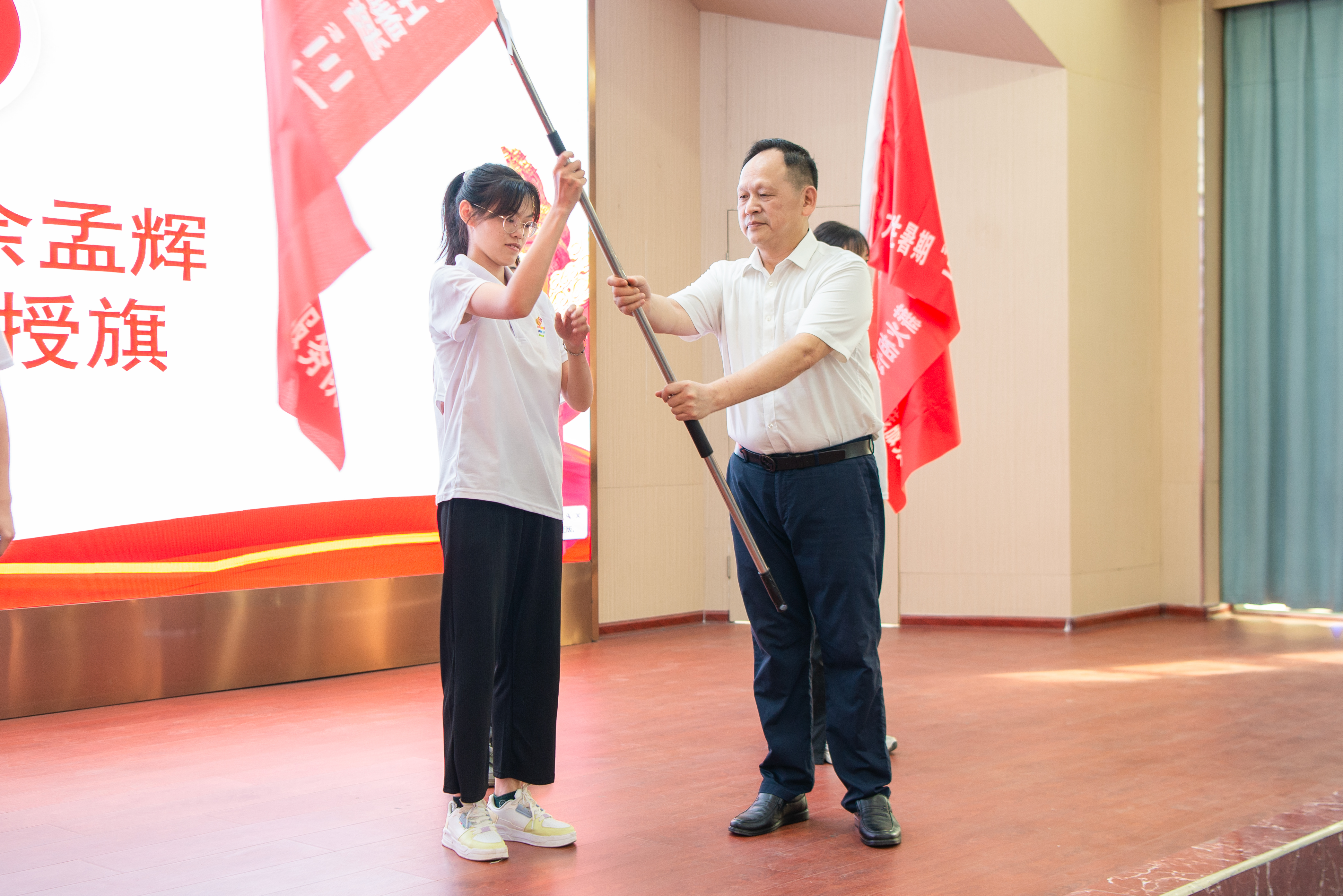 余孟辉7支队“三下乡”社会实践团队分别授旗。