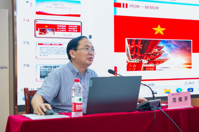 范教授介绍了中国工程物理研究院的历史沿革,从为什么要研制“两弹一星”,研制“两弹一星”的伟大实践及产生的伟大精神,“两弹一星”的伟大成就,“两弹一星”精神的内涵,弘扬“两弹一星”精神的现实意义等四个方面阐释了“热爱祖国、无私奉献,自力更生、艰苦奋斗,大力协同、勇于登攀”的“两弹一星”精神的深刻内涵和精神实质。讲述了邓稼先、于敏等著名科学家为祖国“两弹一星”事业做出重大贡献的动人事迹,他鼓励青年学生应学习老一辈科学家热爱祖国、无私奉献、自力更生、艰苦奋斗的宝贵精神,要有理想、敢担当、能吃苦、肯奋斗,做民族复兴的担当者和奋斗者。