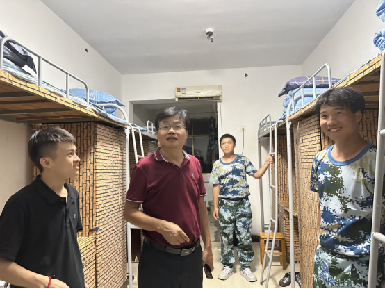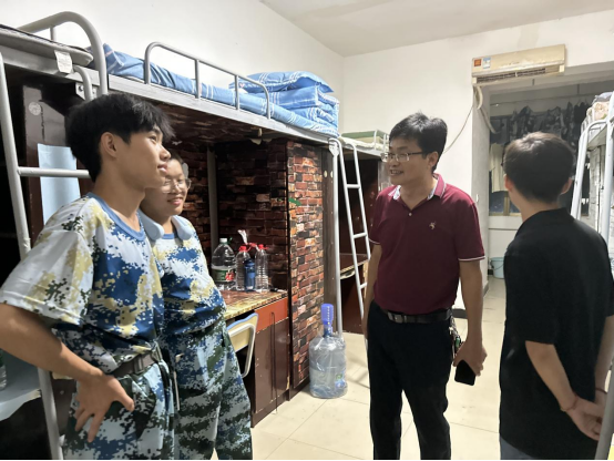 为全面了解2023级新生大学军训适应情况,帮助2023级新生更快地适应大学生活,切实加强师生交流,机电工程学院党总支书记罗斐和辅导员何立权于202399日晚10点深入机电工程学院新生所在的10栋宿舍走访看望新生,与新生们展开了亲切的交谈,并了解新生们的入住情况和感受。