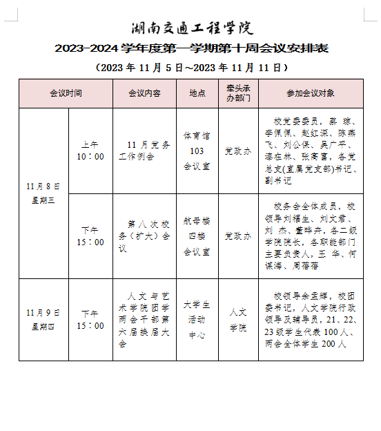 beat365唯一官方网站 2023-2024学年度第一学期第九周会议安排表