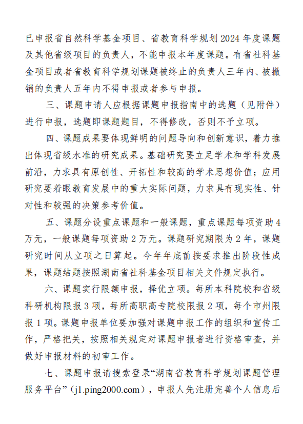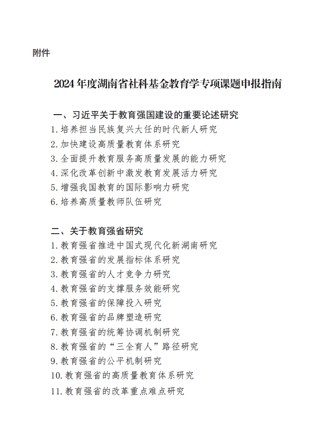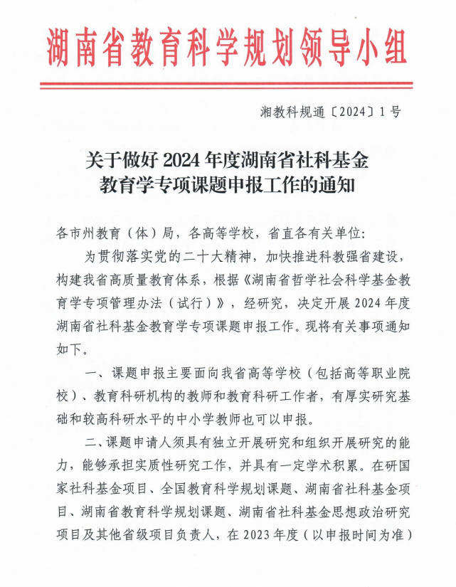 关于做好2024年度湖南省社科基金教育学专项课题申报工作的通知