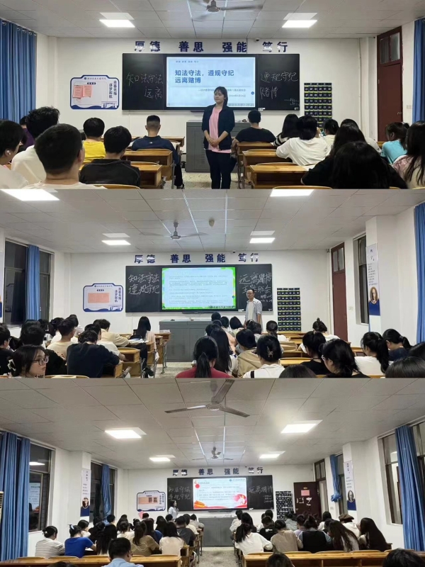 2023年3月24日周日晚19:00,经济管理学院组织各班学生在教学楼举行“知法守法,遵规守纪,远离赌博”主题班会。此次班会四个对大学生遵规守法,学法守法的强调。为规范学生日常,提升学生的法识,督促学生遵纪守法,特开此班会。
