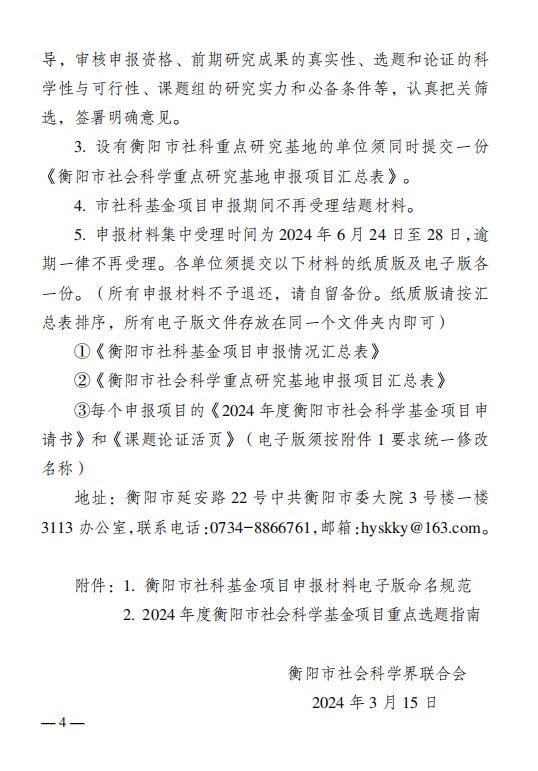 关于2024年度衡阳市社会科学基金项目申报工作的通知