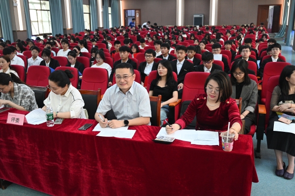 本网讯(通讯员 摄影 赵红深)为深入推动习近平新时代中国特色社会主义思想和党的二十大精神入脑入心,4至5月份,学校举办了第十届大学生学习贯彻习近平新时代中国特色社会主义思想暨思想政治理论课研究性学习成果展示竞赛活动。5月9日下午,在航母楼101会议室举行校级决赛。马克思主义学院全体教师,一、二年级部分学生和参赛选手近400人现场观看了决赛。