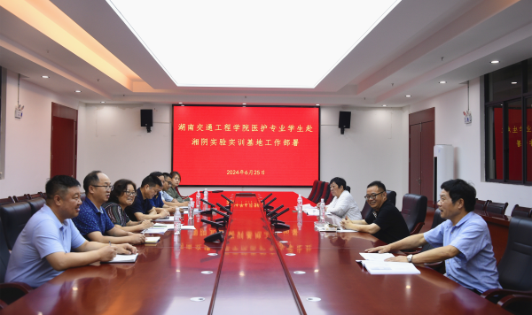 本网讯(通讯员 摄影 李水华)6月25日上午,学校在湘阴基地航母办公楼三楼会议室召开医护专业学生实训工作部署会。名誉校长刘平娥,党委副书记、副校长冯良贵,纪委书记刘毅、高科技研究院副院长邓必雄、医学技术与护理学院院长秦晓群及湖南中医药大学湘杏学院院长助理李云耀、实验中心主任刘晓光参加会议。会议由李云耀主持。
