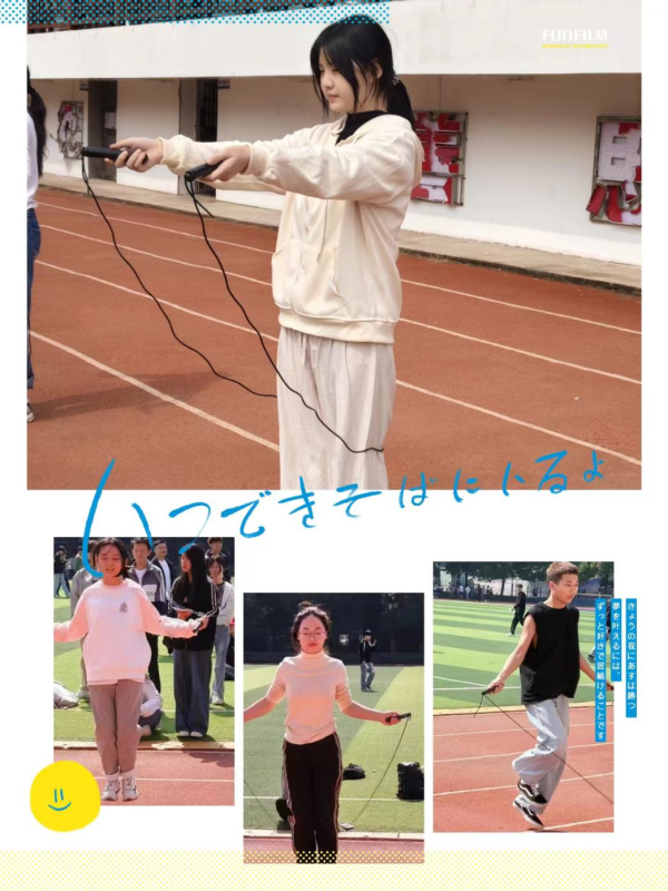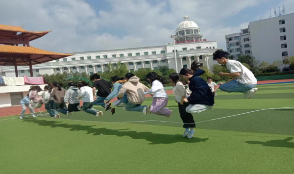 本次比赛设有团体跳绳和单人跳绳两个项目。团体跳绳极大地考验了同学们之间的协作能力。赛场上,队员们齐心协力,绳子在空中有节奏地飞舞,每一次成功的跳跃都伴随着团队成员们的齐声呐喊,那是青春活力与团队精神的完美融合。