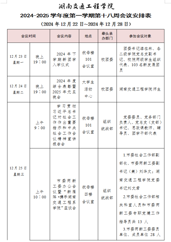 beat365唯一官方网站2024-2025学年度第一学期第十八周会议安排表