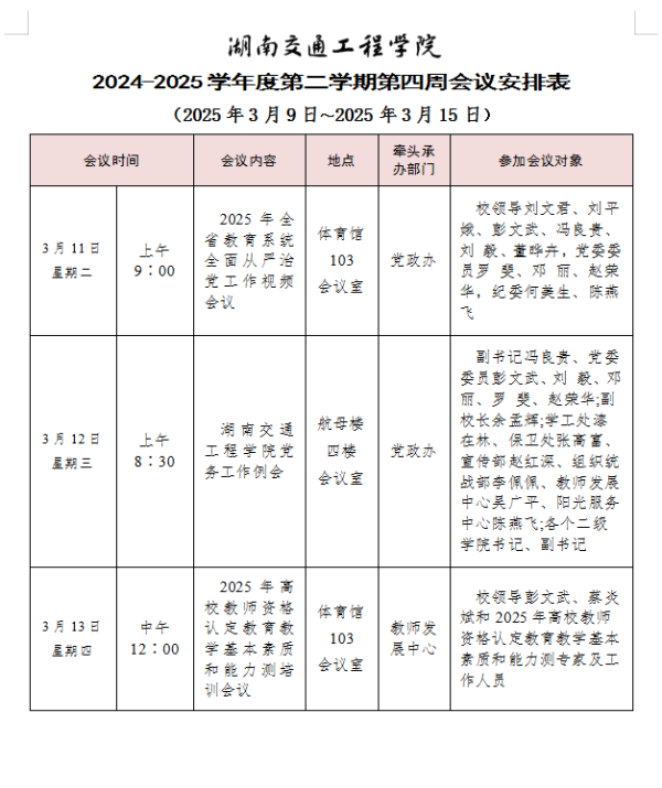 beat365唯一官方网站2024-2025学年度第二学期第三周会议安排表
