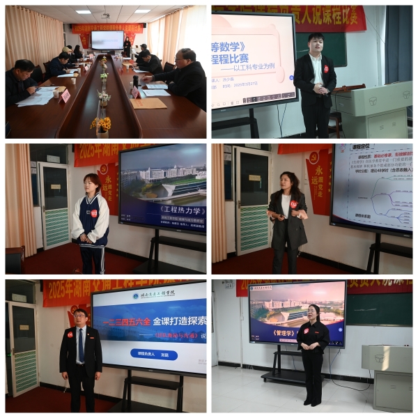 赛事按理工和文科二组分别进行,理工组在强能楼211进行,机器学习、工程热力学、土木工程测量、生理学、康复评定学等16门课程负责人参赛。电气与信息工程学院院长杨兵初、交通运输工程学院院长罗迎社、机电工程学院院长杨启正、医学技术与护理学院院长秦晓群、设备处处长陈伟明、校督导团副团长邓必雄、教务处王海娥担任评委。王海娥主持。