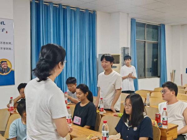 在交流环节中,同学们纷纷起身,介绍自己的家乡、专业和兴趣爱好,分享在校的学习生活感受以及未来的职业规划。