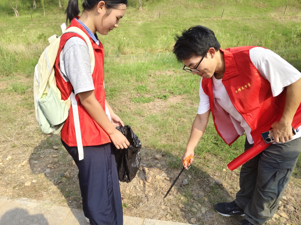 活动正式启动前,志愿者们统一身着象征热情与责任的红色马甲,按照分组沿着既定路线有序前往湘江指定河段,抵达现场后迅速进入工作状态——队员们手持垃圾夹、分类垃圾袋等工具,沿着河岸线展开“拉网式”清理。他们格外注重对隐蔽区域的排查,无论是草丛深处堆积的塑料碎屑,还是石缝中嵌藏的废弃杂物,都逐一弯腰拾起,用细致的“弯腰行动”为河岸“梳妆”。