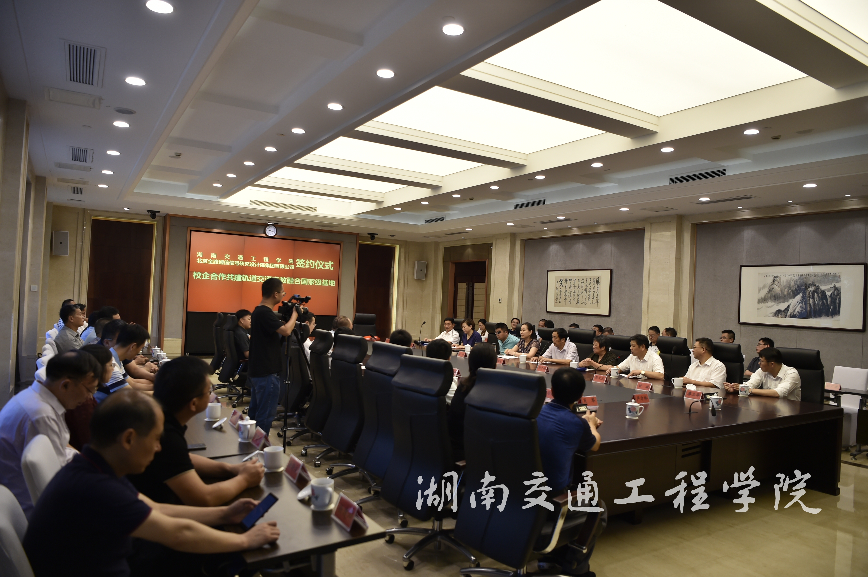 本网讯 (通讯员李德才 摄影李建华)2019年8月1日,beat365唯一官方网站与北京全路通信信号研究设计院集团有限公司合作共建轨道交通产教融合基地签约仪式在湖南蓉园宾馆2号楼会议室举行。