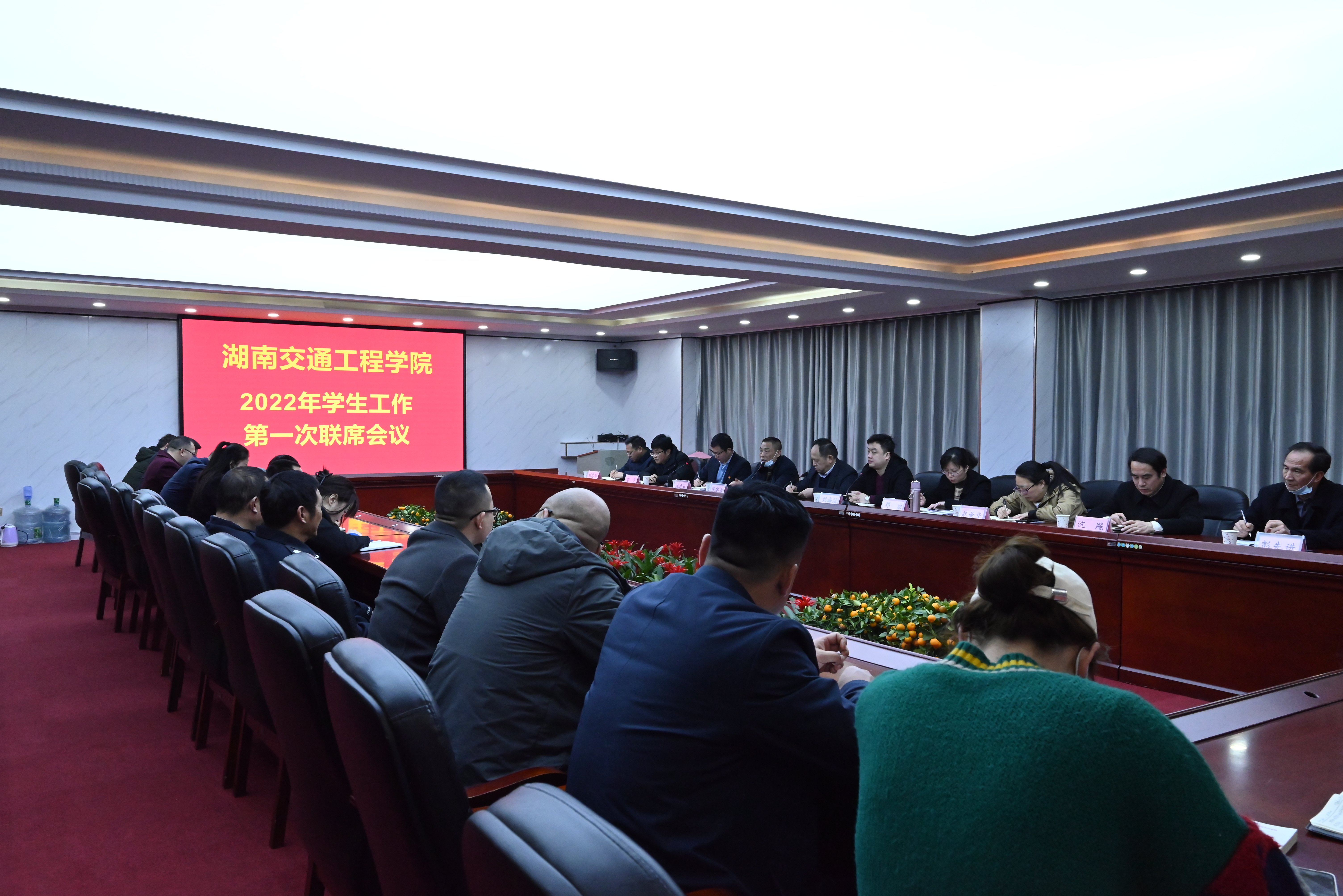 本网讯( 通讯员  周艳萍  摄影 李建华  实习摄影 范睿庭)征程一路鞍未歇,战鼓再擂又出发。2月28日上午,2022年新学期第一次学生工作联席会议在体育馆103会议室召开。副校长余孟辉出席会议,会议由校团委书记、学生处副处长漆在林主持。学生工作处、保卫处、校团委以及各二级学院党总支书记、副书记、干事、辅导员参加会议。