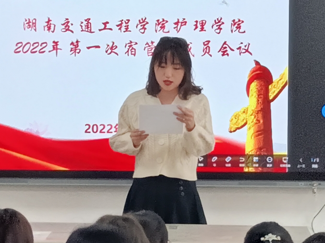 为了进一步加强学生宿舍管理,营造良好的宿舍氛围。护理学院于3月4日中午,在教楼201教室召开2022年第一次学生宿舍自治管理委员会成员会议。学院党总支书记邓丽、副书记肖桂香、十四栋学生社区党支部书记刘娣、十四栋、二十二栋学生党员和学生自治管理委员会代表参加会议。