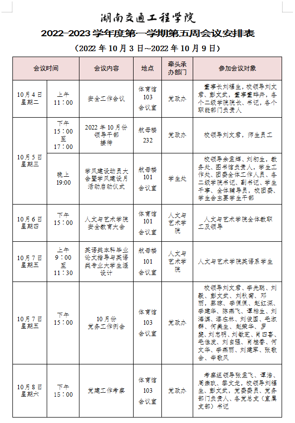 beat365唯一官方网站2022-2023学年度第一学期第五周会议安排表