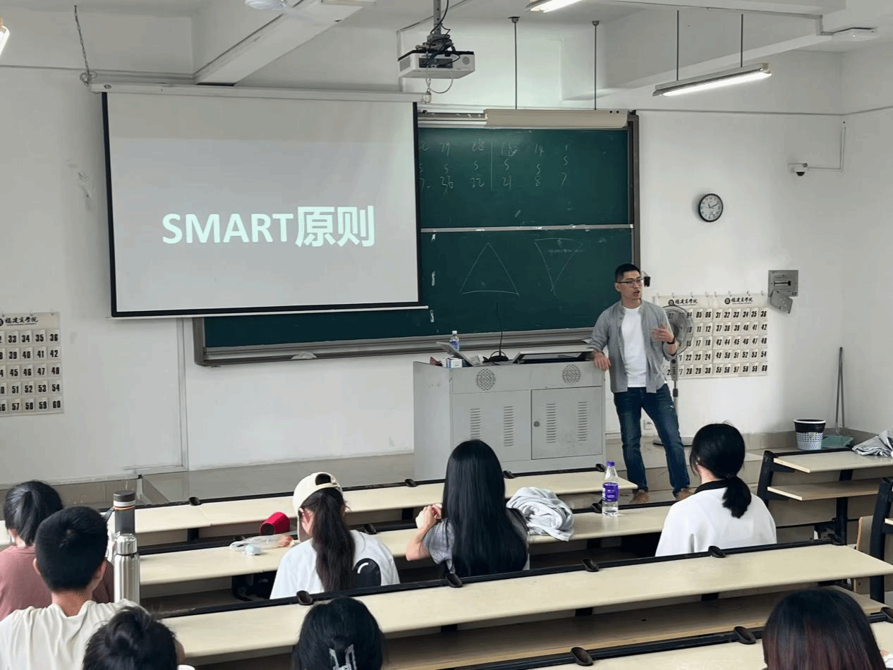 6月9日上午,福州泰禾凯宾斯基酒店刘宇经理为商务英语专业学生作题为“合理设立目标--让你从容立Flag”的讲座。刘经理介绍了目标管理工具SMART原则的具体内容,并利用案例展示基于SMART原则的正确和错误的目标设置,同时和学生分享了工具的局限性,学会辩证性地使用。内容生动有趣、实用性强,可操作性高。