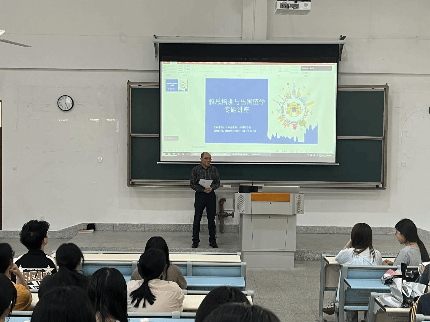 童成寿老师在总结中发言中勉励同学们努力学习英语,扎实英语基础,在有意愿、有条件的前提下积极参加雅思校内培训,为未来出国、出境留学深造做好准备。