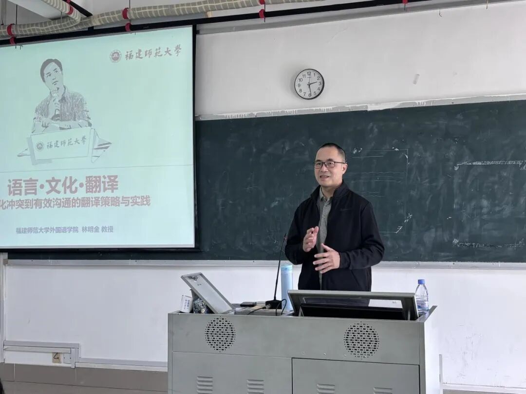 为拓展bat365学生国际视野,提升国际传播能力,12月5日下午,福建师范大学林明金教授应邀莅临bat365,作题为“语言·文化·翻译——从文化冲突到有效沟通的翻译策略与实践”的专题讲座。讲座由副院长童成寿主持,bat365各年级学生代表参加了此次活动。