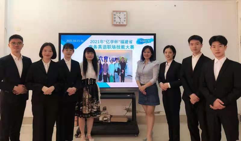 由福建省教育厅主办、厦门亿学软件有限公司协办、福建江夏学院承办的2021年“亿学杯”福建省商务英语职场技能大赛近日落幕。经过激烈比拼,我校Super X战队(选手:许烈章、钟建新、陈传辉、陈芮、阮茜煊、许吴云,指导教师:柯佳音、江盈盈)以项目陈述环节全省第一,最终得分第5名的成绩获二等奖。