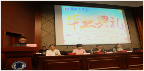 2018年6月27日下午,外语系2018届毕业典礼在马尾校区学术报告厅隆重举行,校党委吴访益副书记、系第一行政临时负责人池玫教授、系第二行政临时负责人范云霞副教授、系党总支临时负责人廖新平副教授以及教研室主任、支部书记等老师出席典礼现场,来自鼓楼、马尾两个校区的2018届毕业生、马尾校区在校生代表参加了毕业典礼。典礼由廖新平老师主持。