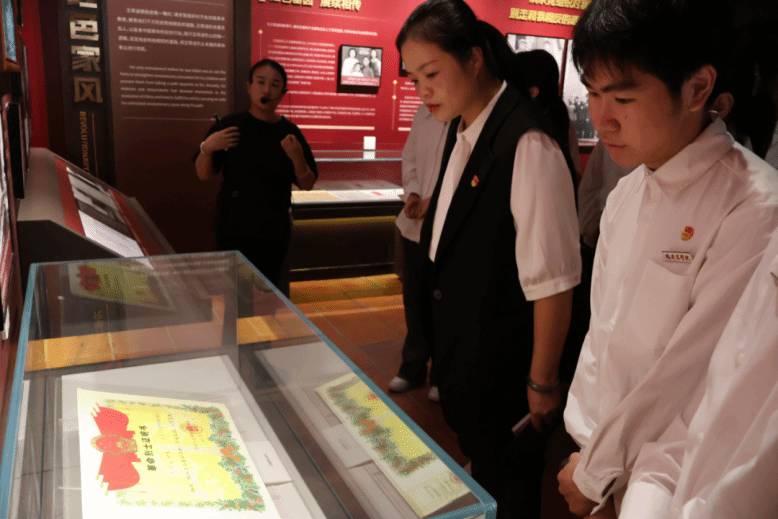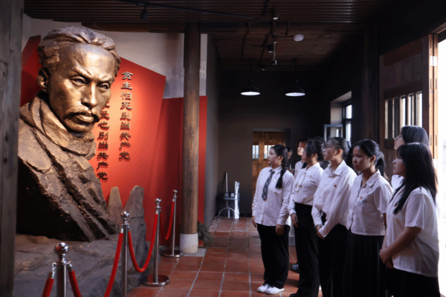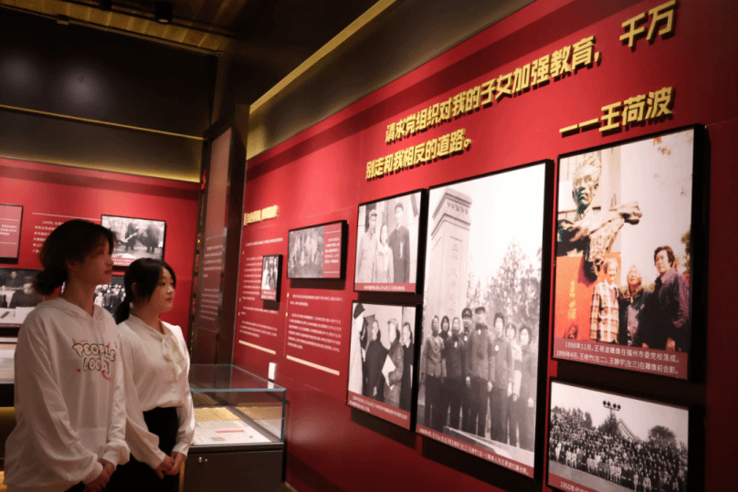 在主题场馆学习中,跟随讲解员的脚步,师生们透过听取王荷波同志的事迹、观看历史视频和图片、瞻仰王荷波的遗留实物和革命先烈的铜像雕塑等形式,深刻感悟革命先烈的家国情怀、廉洁思想和文化基因,深刻理解何为“热血忠诚、品重柱石”的革命精神。