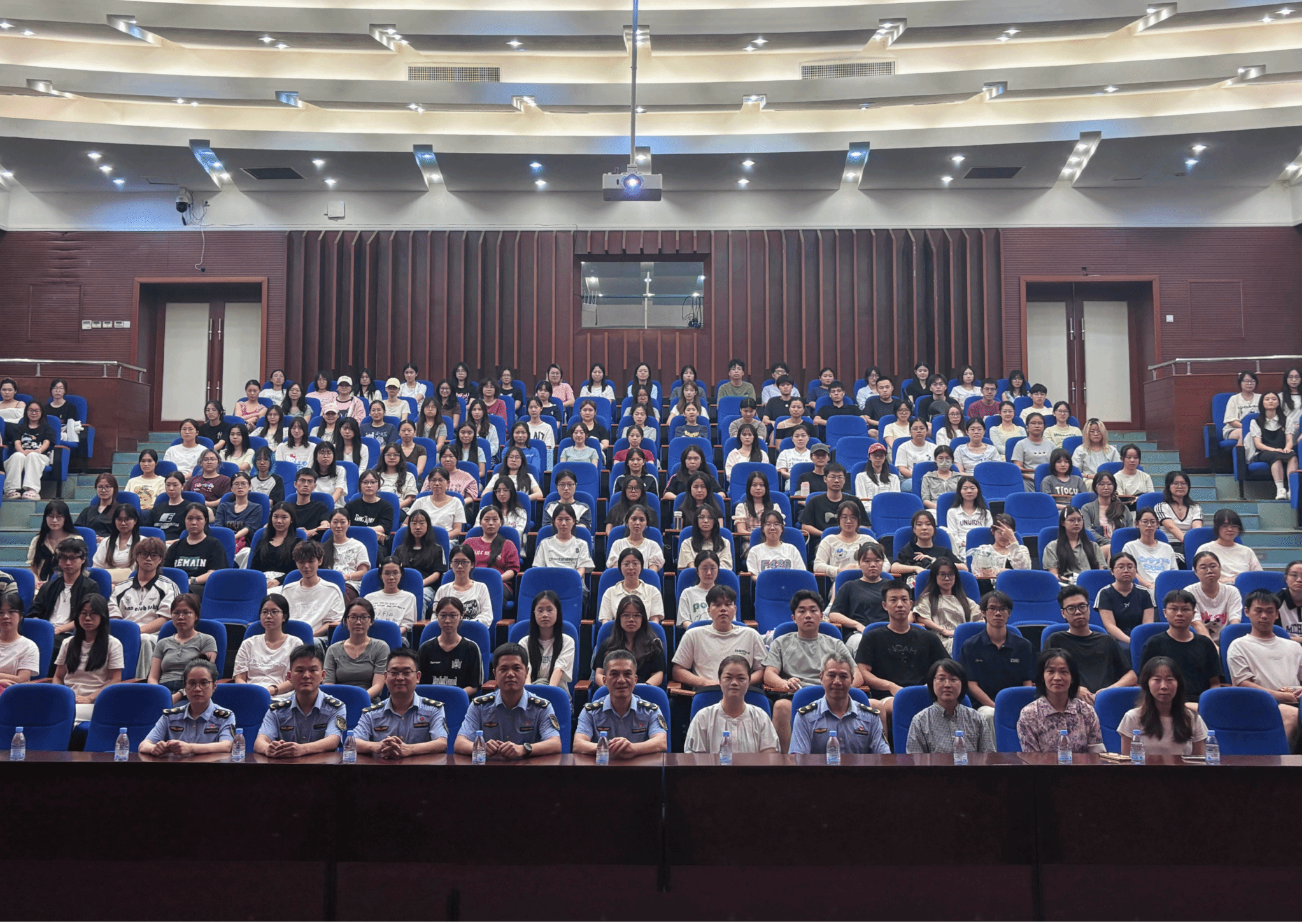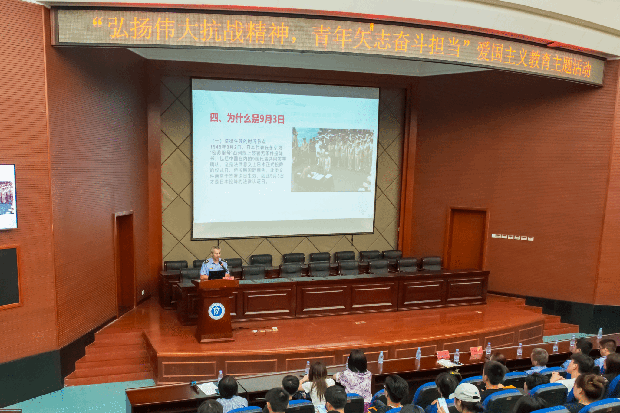 为纪念中国人民抗日战争暨世界反法西斯战争胜利80周年,激励广大师生传承红色基因、赓续红色血脉,9月23日,bat365正版唯一官网开展“弘扬伟大抗战精神,青年矢志奋斗担当”爱国主义教育主题讲座。本次活动特邀福建省海洋与渔业执法总队执法船船长、“全国人民满意的公务员”邱卫华主讲。陈发义政委一行8人、学院党委副书记杨爱娥、全体辅导员和近300名学生参与本次活动。