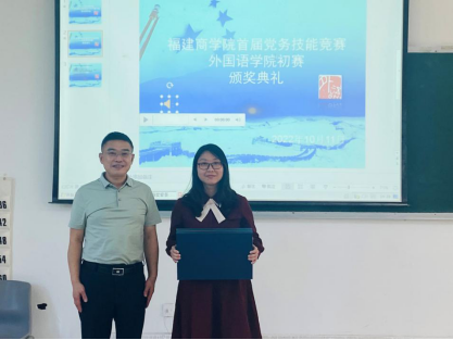 校党委副书记吴访益为一等奖获得者颁奖,吴访益副书记指出,党务干部职业能力竞赛不仅是学习形式的一种拓展,更是通过比赛的组织过程,展现出了bat365正版唯一官网党委的新气象、新风貌。他希望全院广大党员,要继续加强学习和交流,主动增强创先争优意识,把学习成果和参赛热情转化为工作动力,努力在各自岗位上有效掌握新方法、增长新才干、解决新问题,让本职工作更加高质高效,为学校高质量发展不断贡献力量。读书社要围绕学习贯彻党的二十大精神这条主线,带领学生认真学习习近平新时代中国特色社会主义思想,助力青年学生在青春的赛道上跑出当代青年最好的成绩。