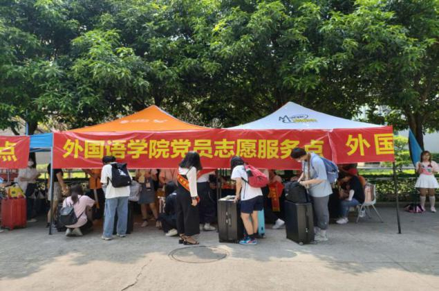 工作人员坚守在服务岗位,整装待发,以“热情周到、安全有序”的原则为新生介绍学校情况、搬运行李、答疑解惑,带领新生前往外语体验中心办理入学手续。一个个忙碌的身影,一句句亲切的问候,认真而细致的服务传递出了学院的温情,缓解了新生初来乍到的紧张感。助导们收集并核对新生相关资料,耐心地讲解入学注意事项,解决新生在报到中遇到的难题。学院领导们前往各站点了解迎新工作情况,对新生的到来表示热烈的欢迎,同时也对师生志愿者们进行了慰问,充分肯定他们的辛勤付出,并叮嘱工作人员在做好疫情防控的基础上,要更加细致地了解新生的情况,确保各个环节顺利进行。