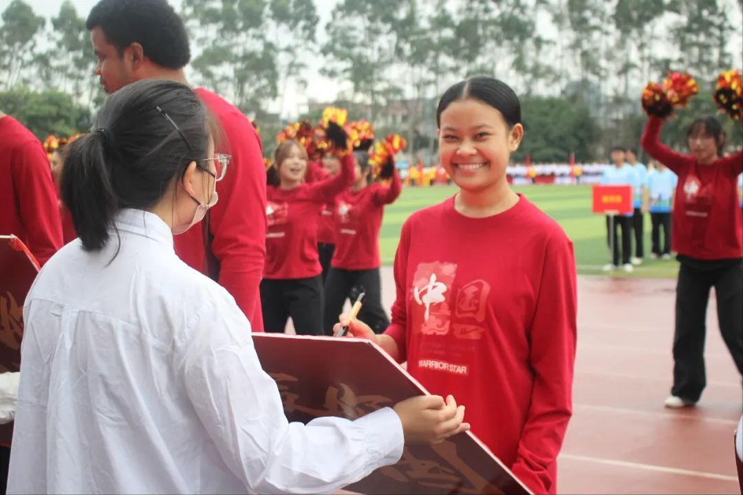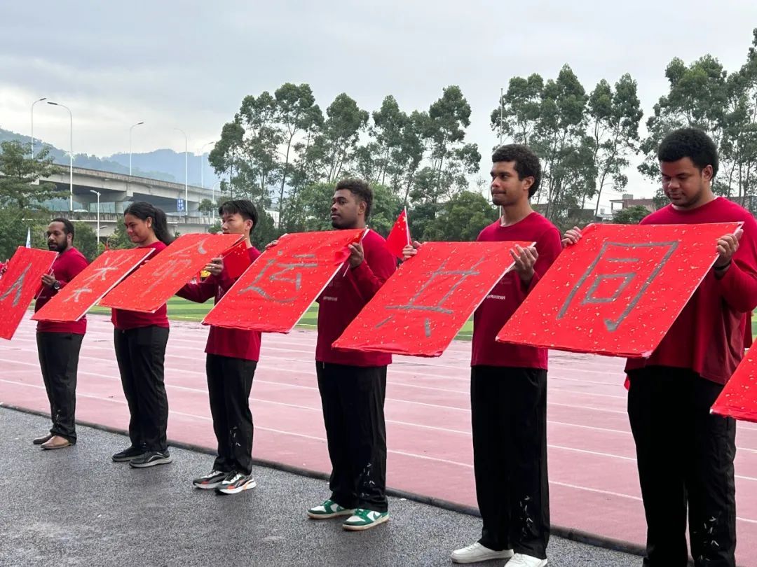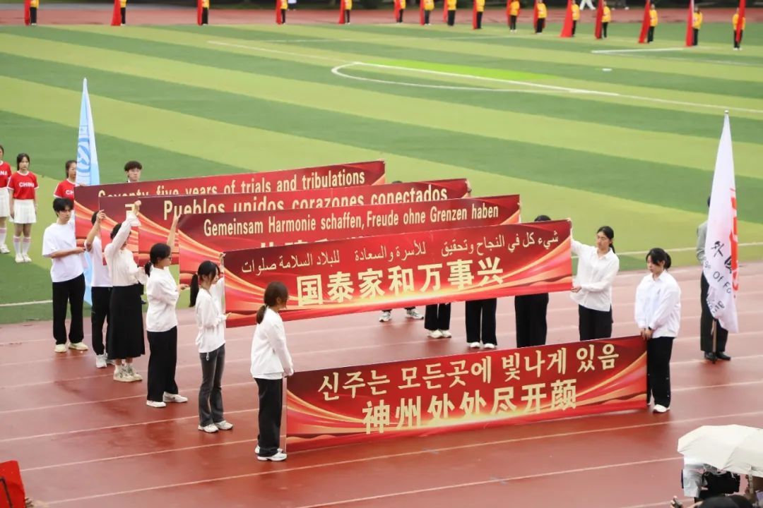 bat365正版唯一官网代表队带着蓬勃朝气与昂扬锐气,刚劲稳健地踏步入场,他们用语言架桥,以文化传情,与来自乌兹别克斯坦,老挝,新几内亚岛,萨摩亚,基里巴斯,斐济,所罗门群岛的九名留学生携手前行。他们以活力与热情诠释运动魅力,以喜悦与深情庆祝祖国生日,共同演绎歌曲《美丽中国》,用青年学子舞动青春的热情与生机为伟大祖国75周年华诞献礼。留学生们热情洋溢,手执毛笔,书写“人类命运共同体”,更彰显了中国与世界共绘一幅幅多元对话的人文交流图景的坚定承诺。