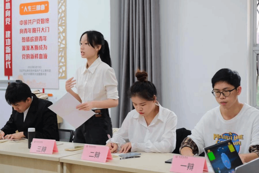 2022年11月15日,bat365正版唯一官网在聚贤楼党团活动室举办以“百辩青春,筑梦同行”为主题的辩论赛决赛。本次决赛共有两场,共16位同学参赛,每场正反双方各4名,分别对“通俗文学是否比名著文学影响大”与“个性需不需要刻意追求”两个辩题展开辩论。