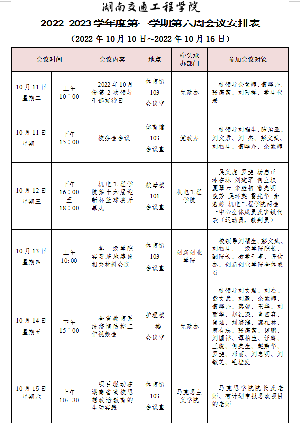beat365唯一官方网站2022-2023学年度第一学期第六周会议安排表