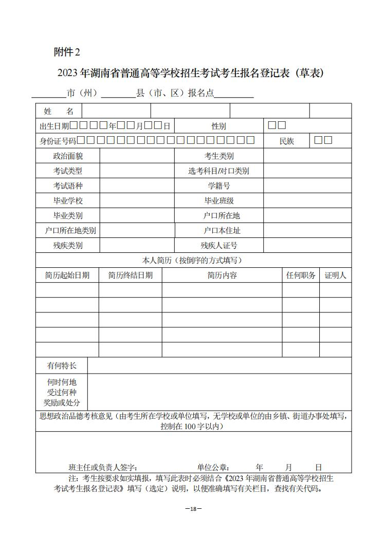 附件:1.《2023年湖南省普通高等学校招生考试考生报名登记表》填写(选定)说明