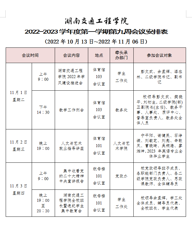 beat365唯一官方网站2022-2023学年度第一学期第九周会议安排表