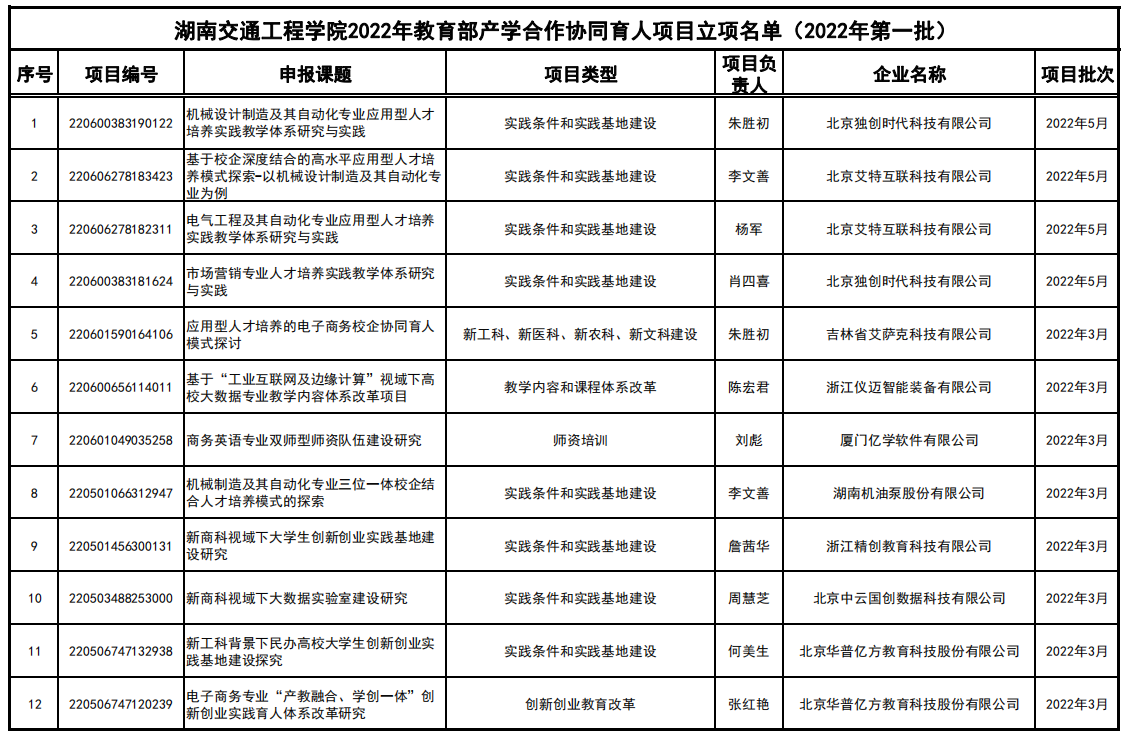 近日,从《教育部高等教育司关于公布2022年第一批产学合作协同育人项目立项名单的通知》(教高司函〔2022〕8号文件)中获悉,beat365唯一官方网站2022年第一批产学合作协同育人项目共有12个项目获准立项,其中“新工科、新医科、新农科、新文科建设”项目1项、“教学内容和课程体系改革”项目1项、“师资培训”项目1项、“创新创业教育改革”项目1项,“实践条件和实践基地建设”项目8项,创beat365产学合作协同育人项目历史新高。