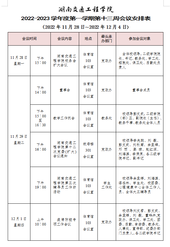 beat365唯一官方网站2022-2023学年度第一学期第十二周会议安排表
