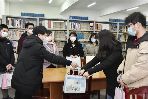 “这次为考研学生准备的大礼包我们取名叫‘前程似锦’,里面有薯片、柿饼、糖果、手写祝福卡和印有‘金榜题名’防疫口罩,寓意我们每一个学生都是最牛的,希望他们事事如意、金榜题名。”刘敏芝介绍,学院还邀请毕业年级辅导员、学生代表、陪伴同学们备考的图书馆工作人员为同学们录制了祝福视频,“让学生看到交工院有一群关心、关爱他们的人,见证着他们的努力,期待着他们的喜讯。”