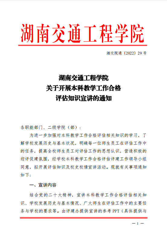 beat365唯一官方网站 关于开展本科教学工作合格 评估知识宣讲的通知