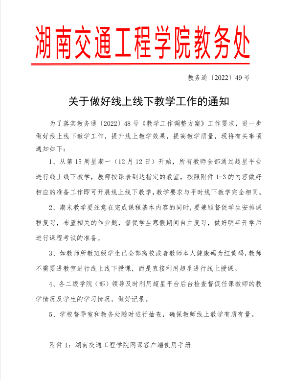 关于做好线上线下教学工作的通知