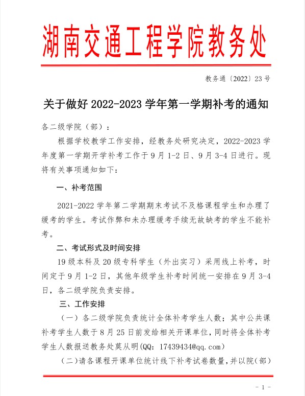 关于做好2022-2023学年第一学期补考的通知