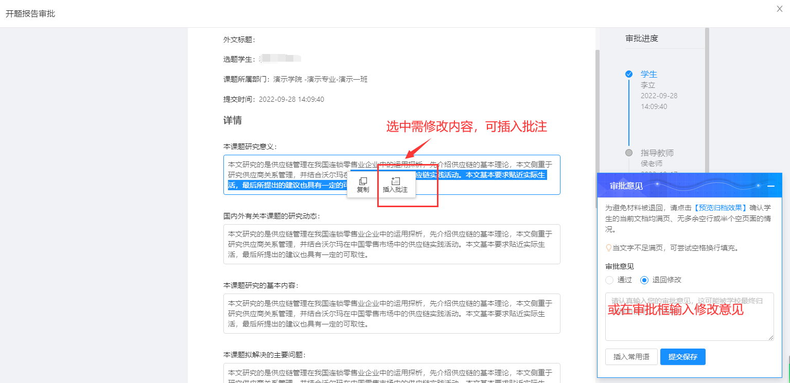 审批时,进行批量审批或批量驳回、插入审批常用语。