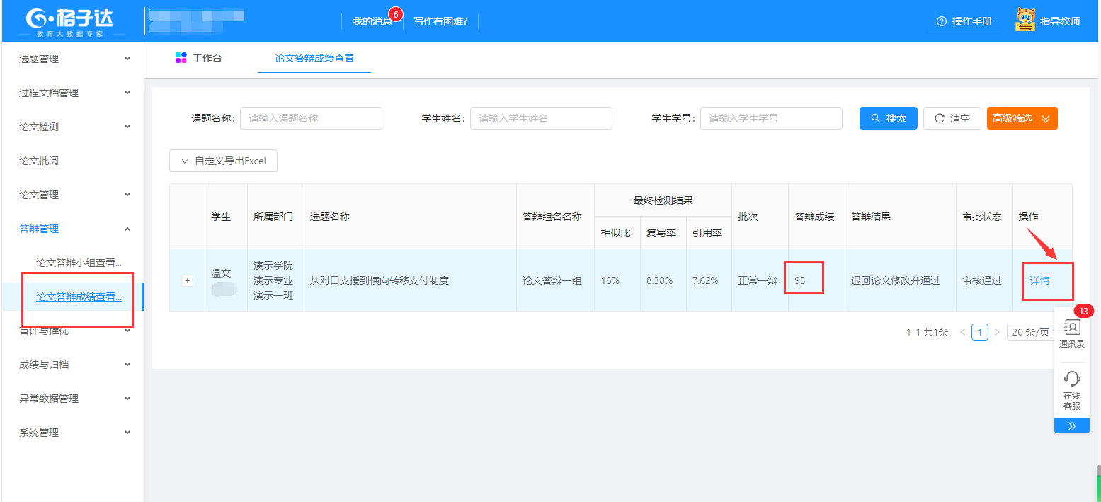 十二、 如何查看学生答辩成绩