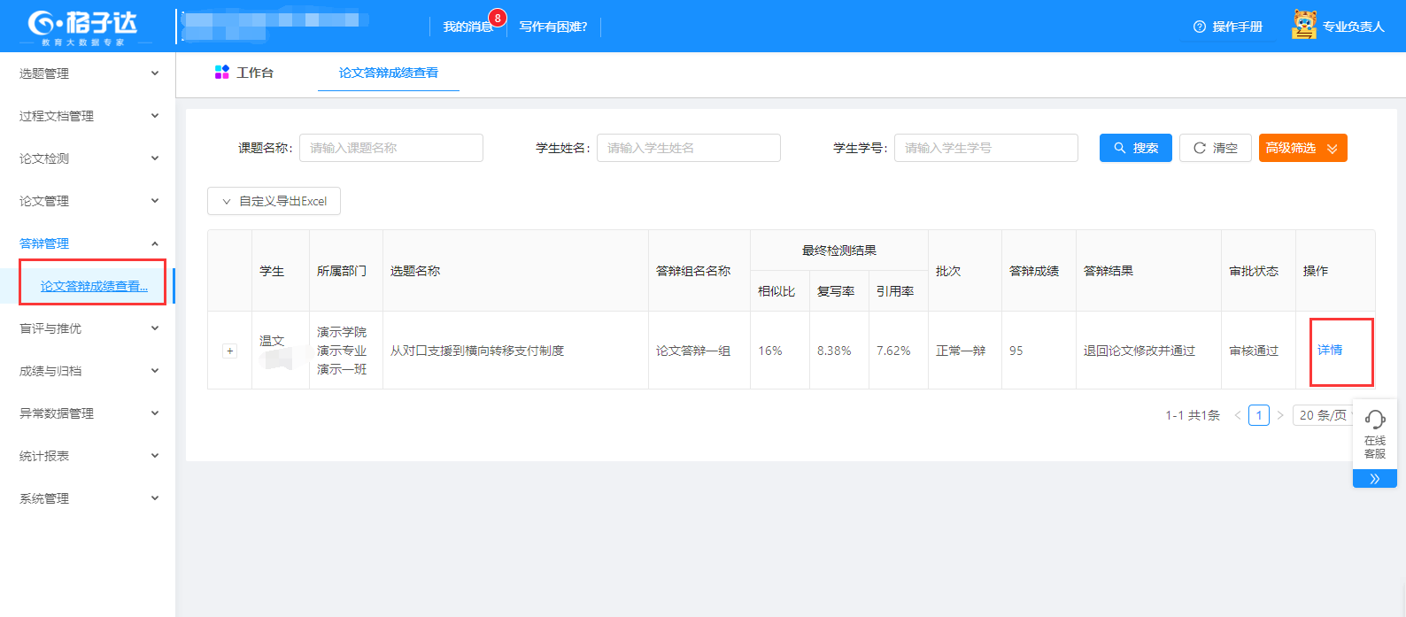 七、答辩成绩查看