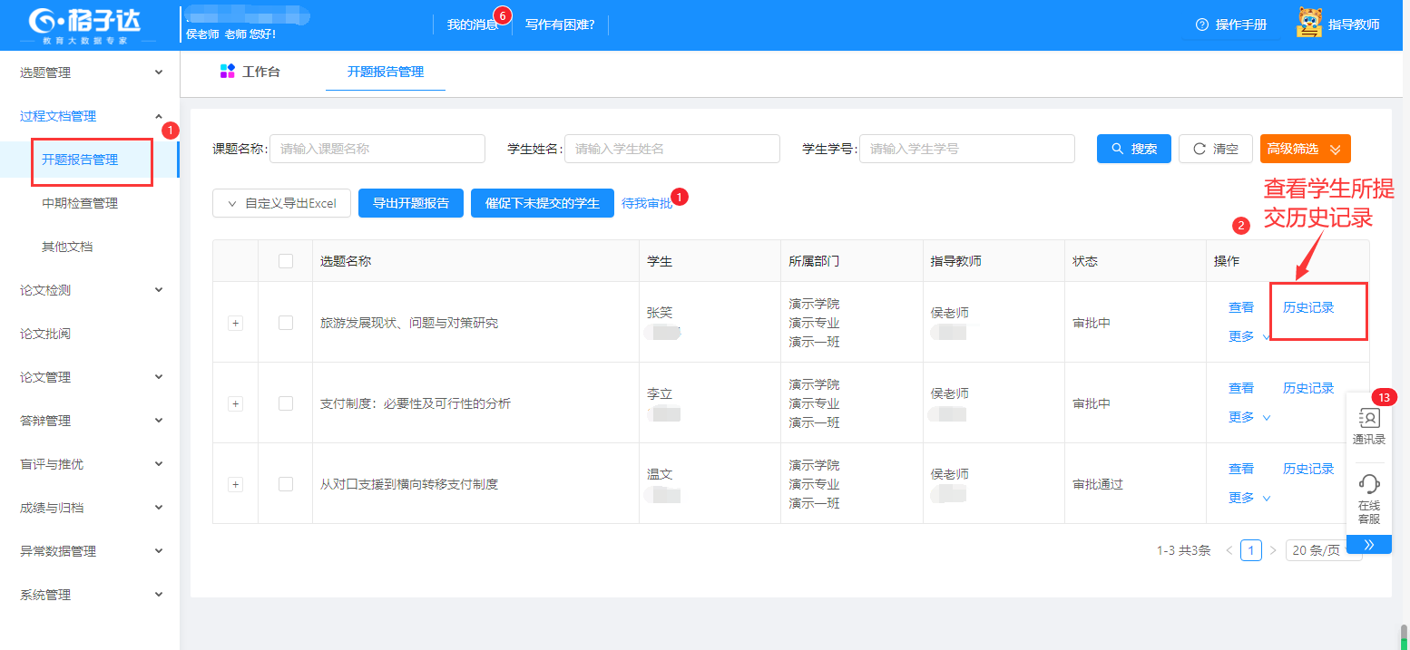 3.任务书/开题报告/中期检查/过程指导记录:可查看相关内容。