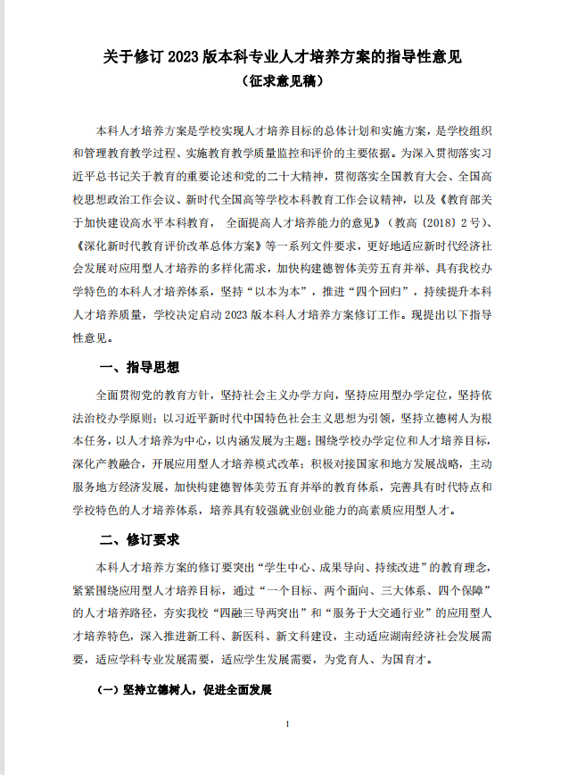 关于修订2023版本科专业人才培养方案的指导性意见(征求意见稿)