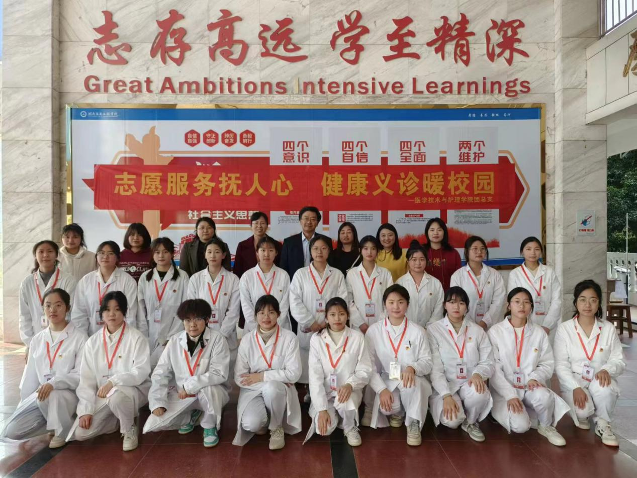为了进一步提高学院老师与同学们的健康意识和自我保健意识,了解自身身体状况。借第60个“学习雷锋纪念日”之际,3月5日,医学技术与护理学院院长陈熙,党总支书记邓丽,党总支副书记兼团总支书记肖桂香,副院长廖小立,教务干事老师张怡春,学生干事老师陈文蓉,带领团总支团干和志愿者们在教学楼大厅开展“志愿服务抚人,健康义诊暖校园”爱心义诊活动。